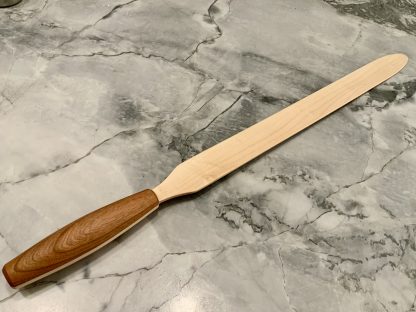 There are lefse turning sticks, and then there is this magnificent, made-for-serious-lefse-makers tool with a ergonomic handle. Yep, the Cherry Square Deal handle with a squared bottom feels so good that you’ll want to roll round lefse. You may not want to put down this lefse stick. The maple blade with the beveled front edge is firm, flexible, and fantastic for flipping rounds. The quality, feel, and functionality are uniformly excellent, so you’ll be eager make lefse with this Walnut Can’t Wait. Crafted by Jim Jacobs of the Minnesota Woodturners Association.